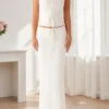 Summer outfit for women in solid colors; Women’s bandeau with drawstring front, strapless, crop length; Women’s skirt with elastic waist and drawstring, ankle length to show off your charming curves