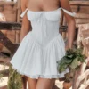 Womens Summer Flowy Dress Sleeveless Square Neck Tie-up Front Short Tank Dress Casual A-line Dress