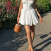 Womens Summer Flowy Dress Sleeveless Square Neck Tie-up Front Short Tank Dress Casual A-line Dress
