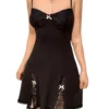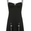 Women Summer Dress Y2K Aesthetic Gothic Kawaii Sexy Dress Lace Bow Trim Sleeveless V Neck Mini Split Dresses