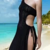 Women’s Beach Cover Up Dress Sleeveless One Shoulder Knit Crochet Bikini Cover Up Bathing Suits