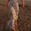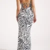 Women’s Zebra Print Cami Dress Sleeveless Tie Backless Bodycon Long Dress Summer Beach Dress